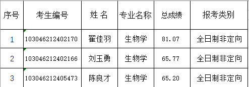 2026年生物学硕士研究生一志愿拟录取名单